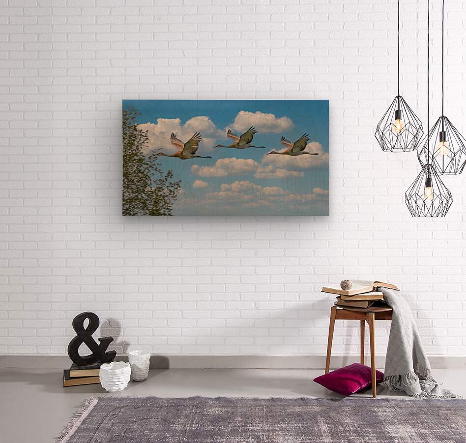 Three cranes a crusin Wood print