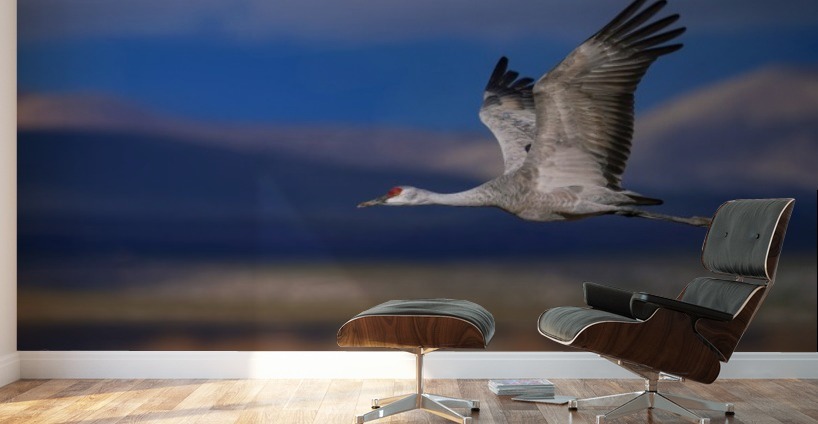 Sandhill crane, the oldest living species of bird, glides over the prairie of Bosque del Apache, New Mexico, during the annual migration, #1927