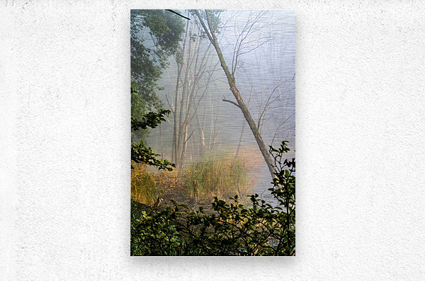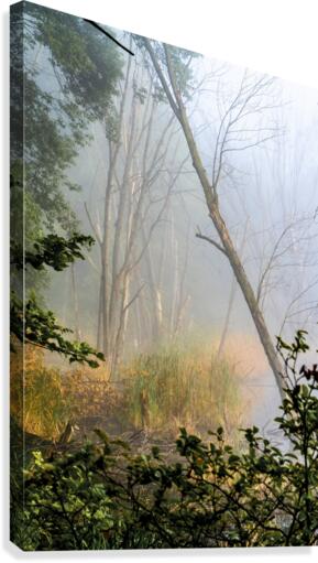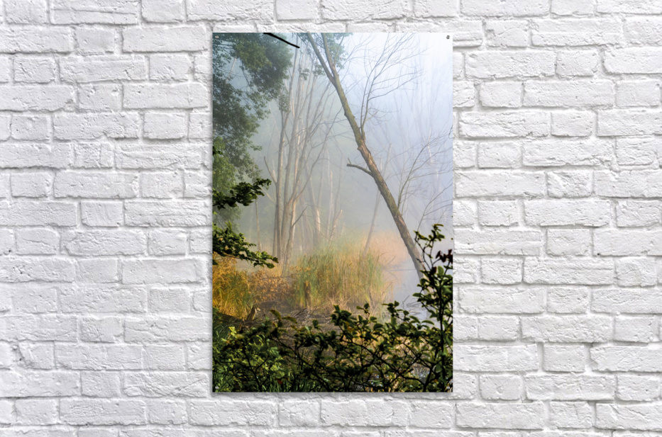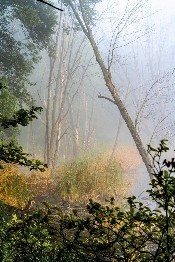 A fall tree leans into the fog of Snail Lake wetlands in Shoreview, Minnesota, #2016