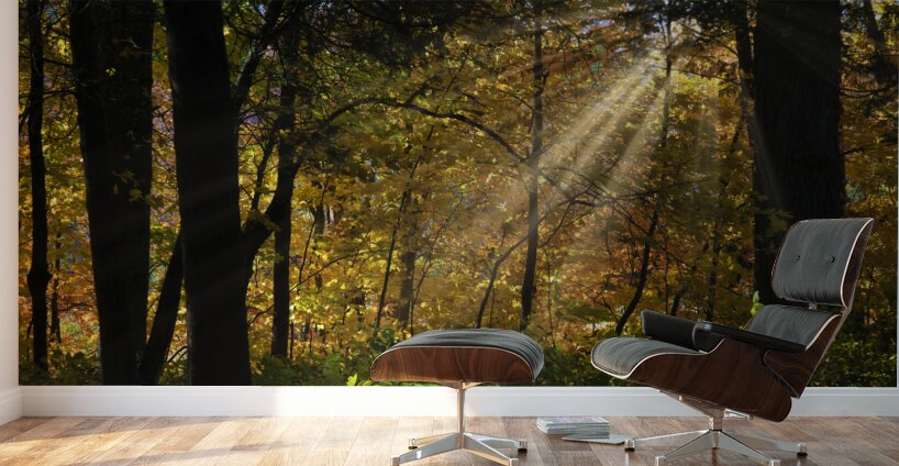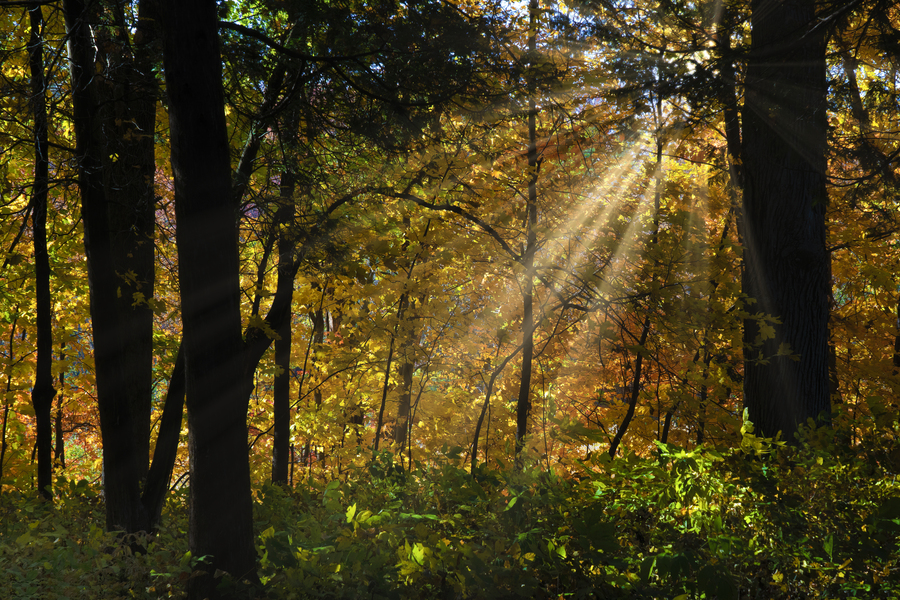 The light beams of the forest provide a perfect path for the falling leaves of autumn, #2233