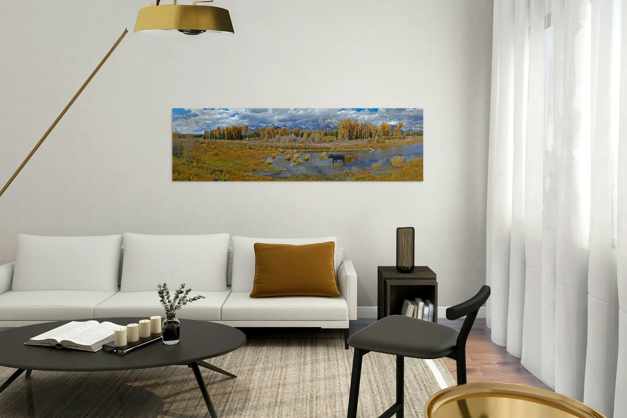 Surrounded by fall aspens, the panoramic Snake River near Jackson Hole, Wyoming and the Teton Mountain range is home to moose and many other wildlife, #0995