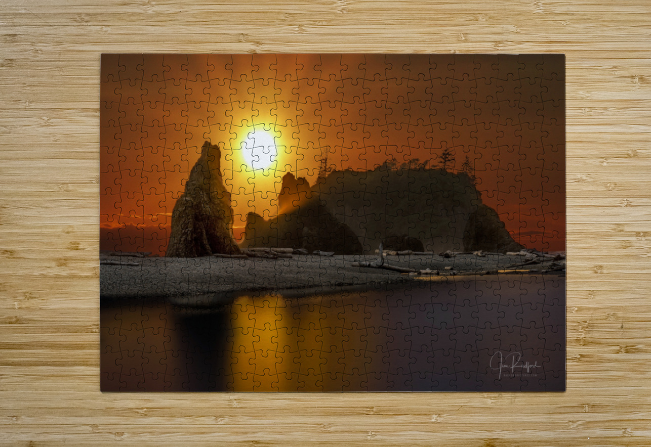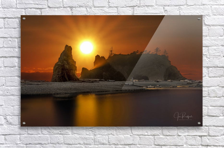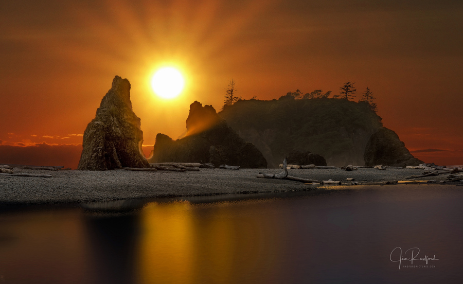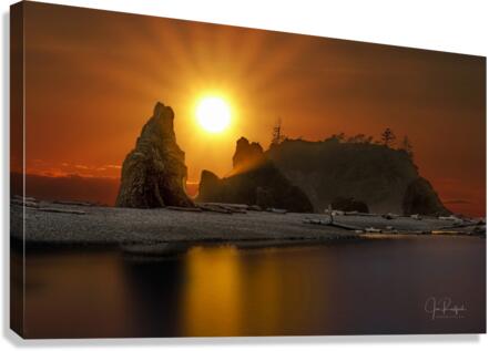 the sun sets on the sea stacks along the coast of Washington, #1881b