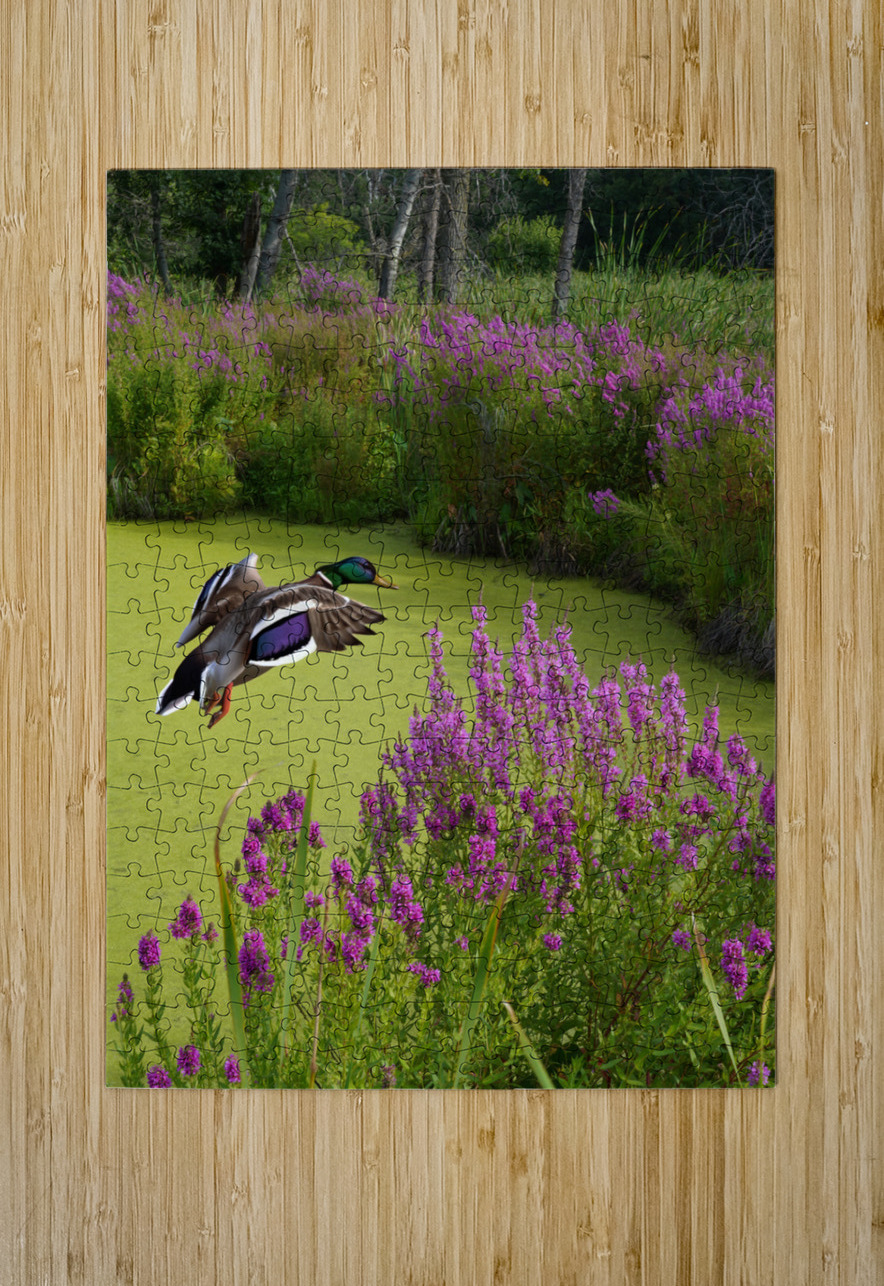 Mallard in flower pond Jim Radford Puzzle printing