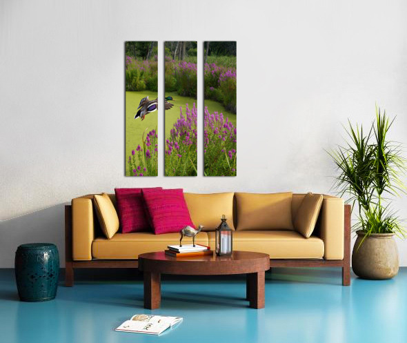 Mallard in flower pond Canvas print