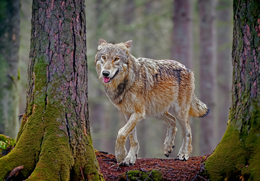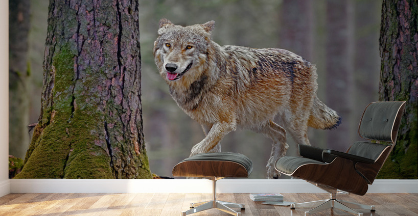 Wild wolf in the forest between Teton Mountains and Yellowstone national parks rendered with AI, #0956B