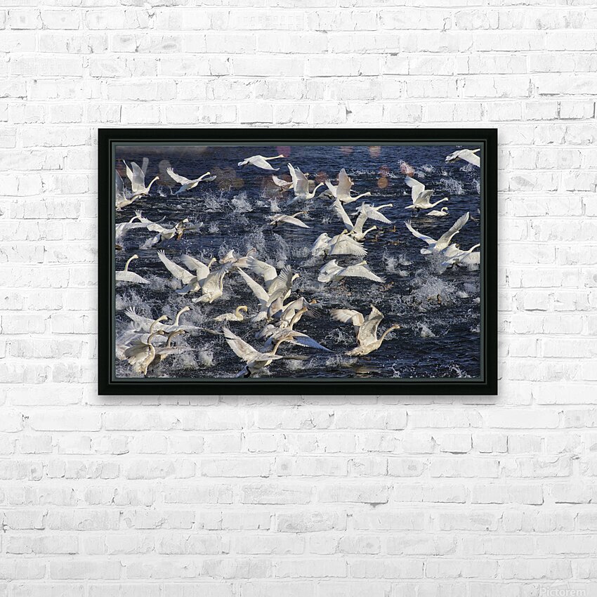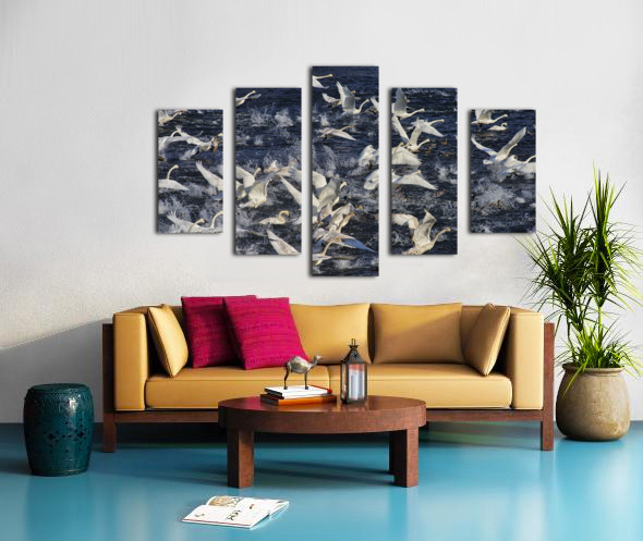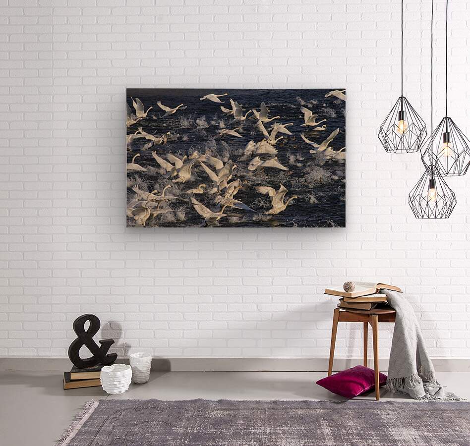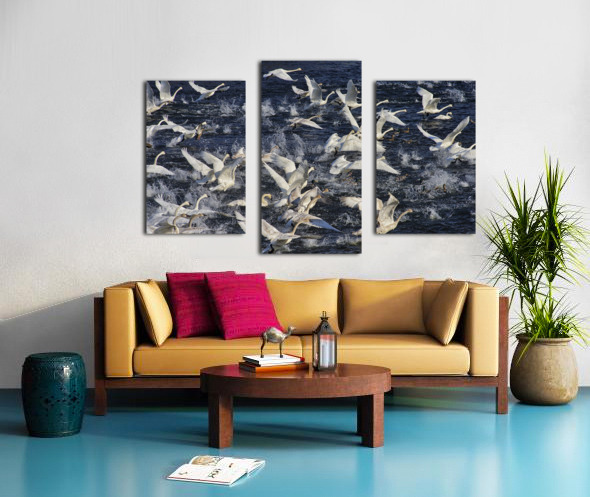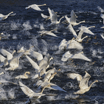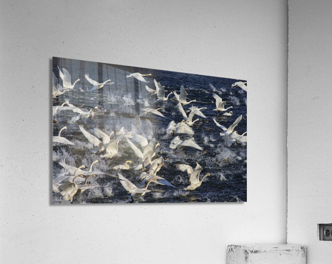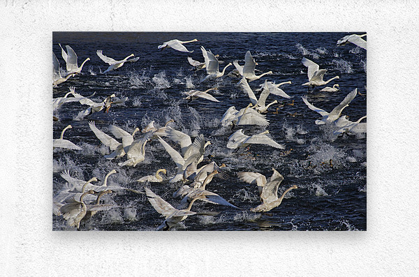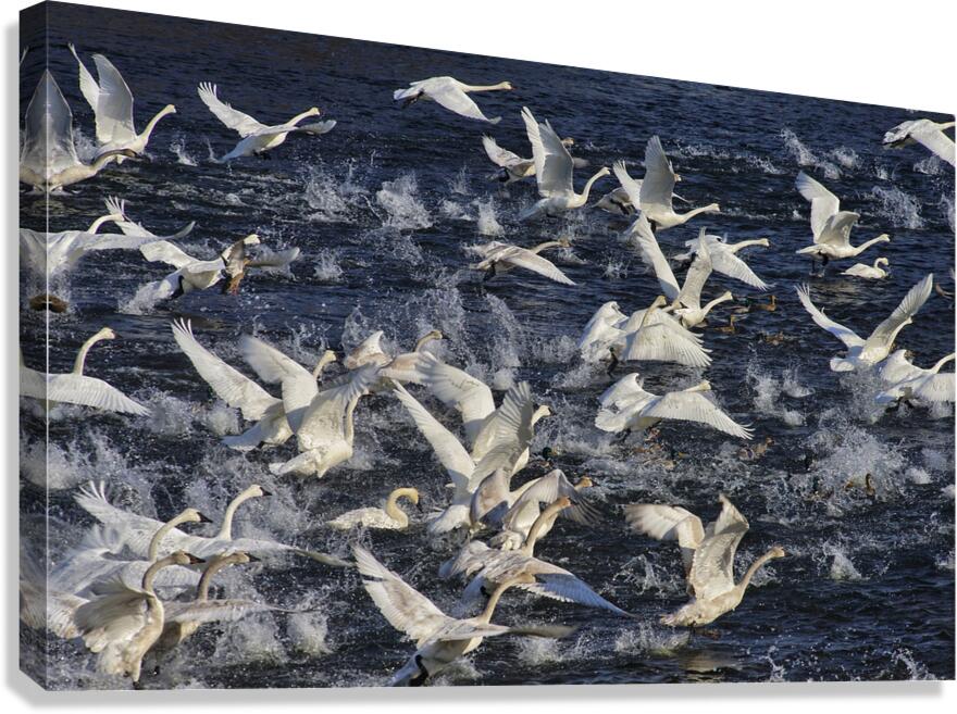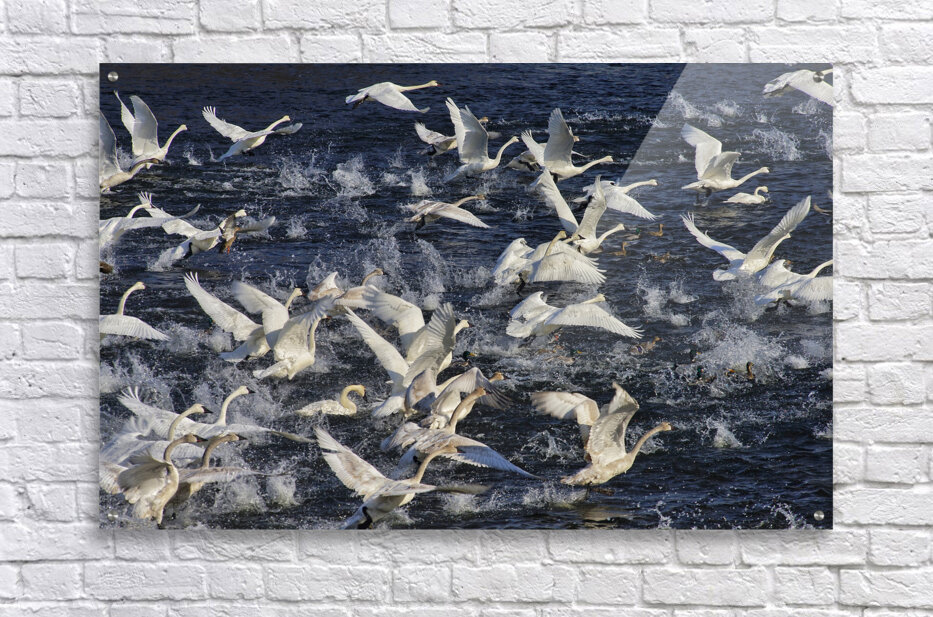 Flock of swans liftoff on the Mississippi River in Minnesota, #1723