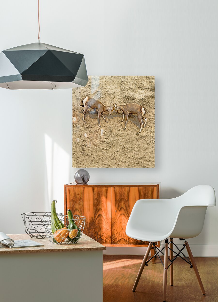 Jousting Big Horn Sheep  Wood print