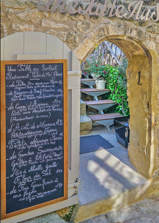 Doorway of restaurant Uni Table Au Soleil in Les Baux, France, #1448