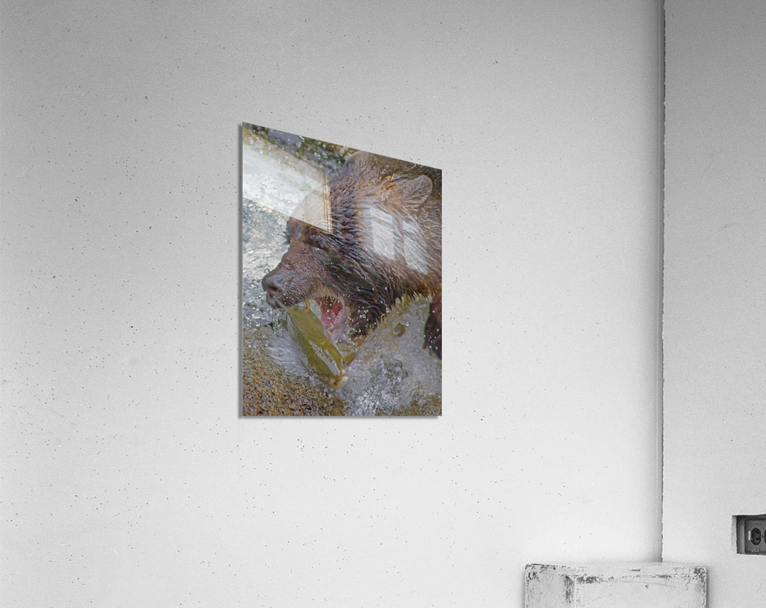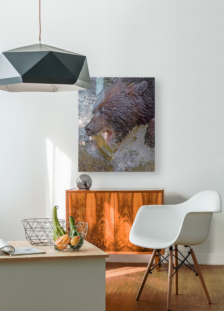 Grizzly bear and dinner  Wood print