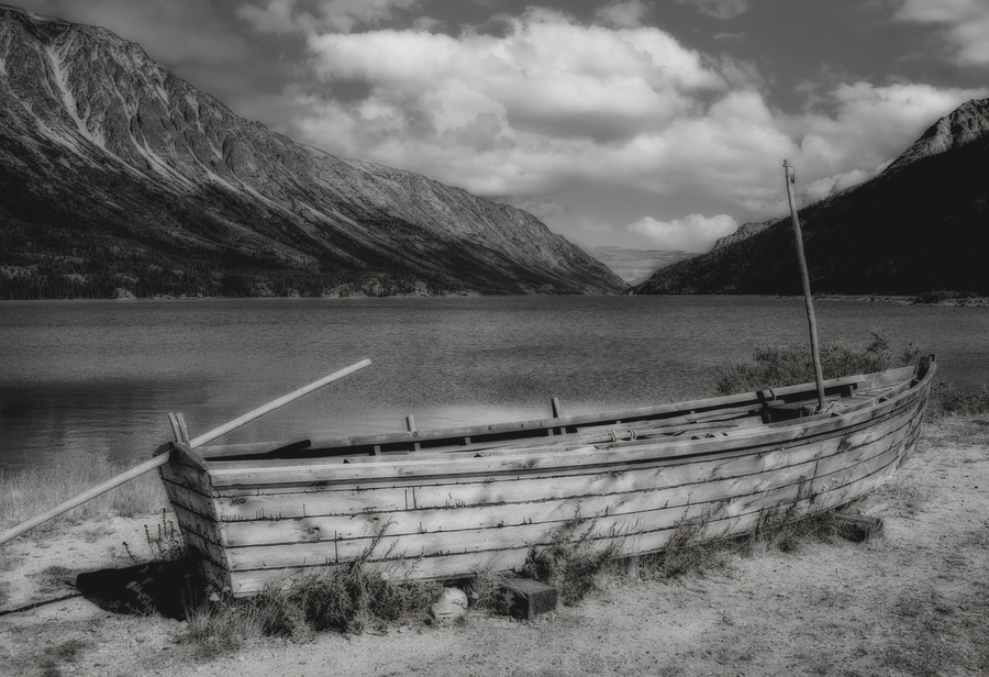 A vintage boat at Lake Bennett in the Yukon territory, #077b