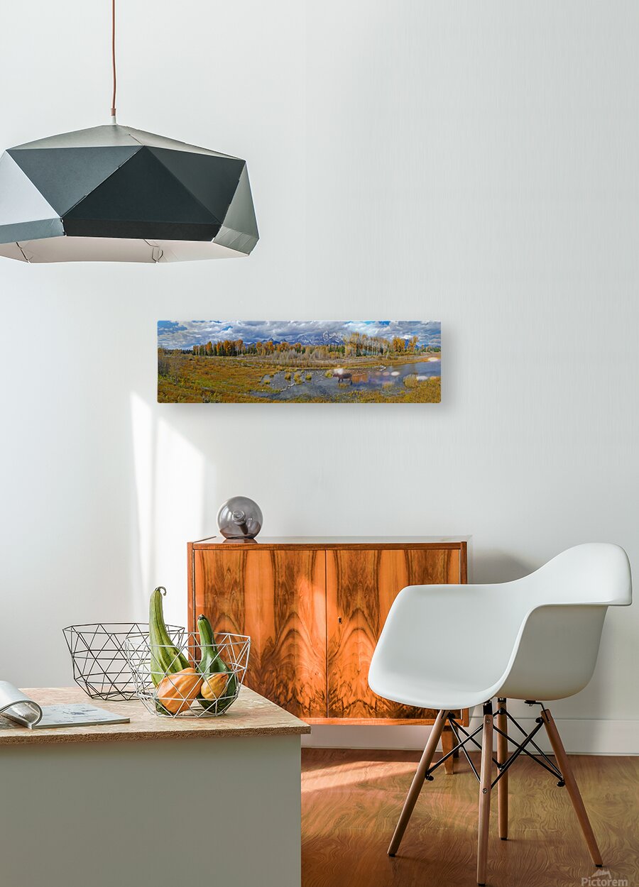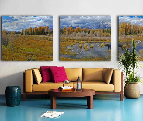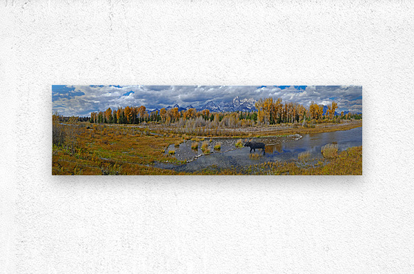 Surrounded by fall aspens, the panoramic Snake River near Jackson Hole, Wyoming and the Teton Mountain range is home to moose and many other wildlife, #0995