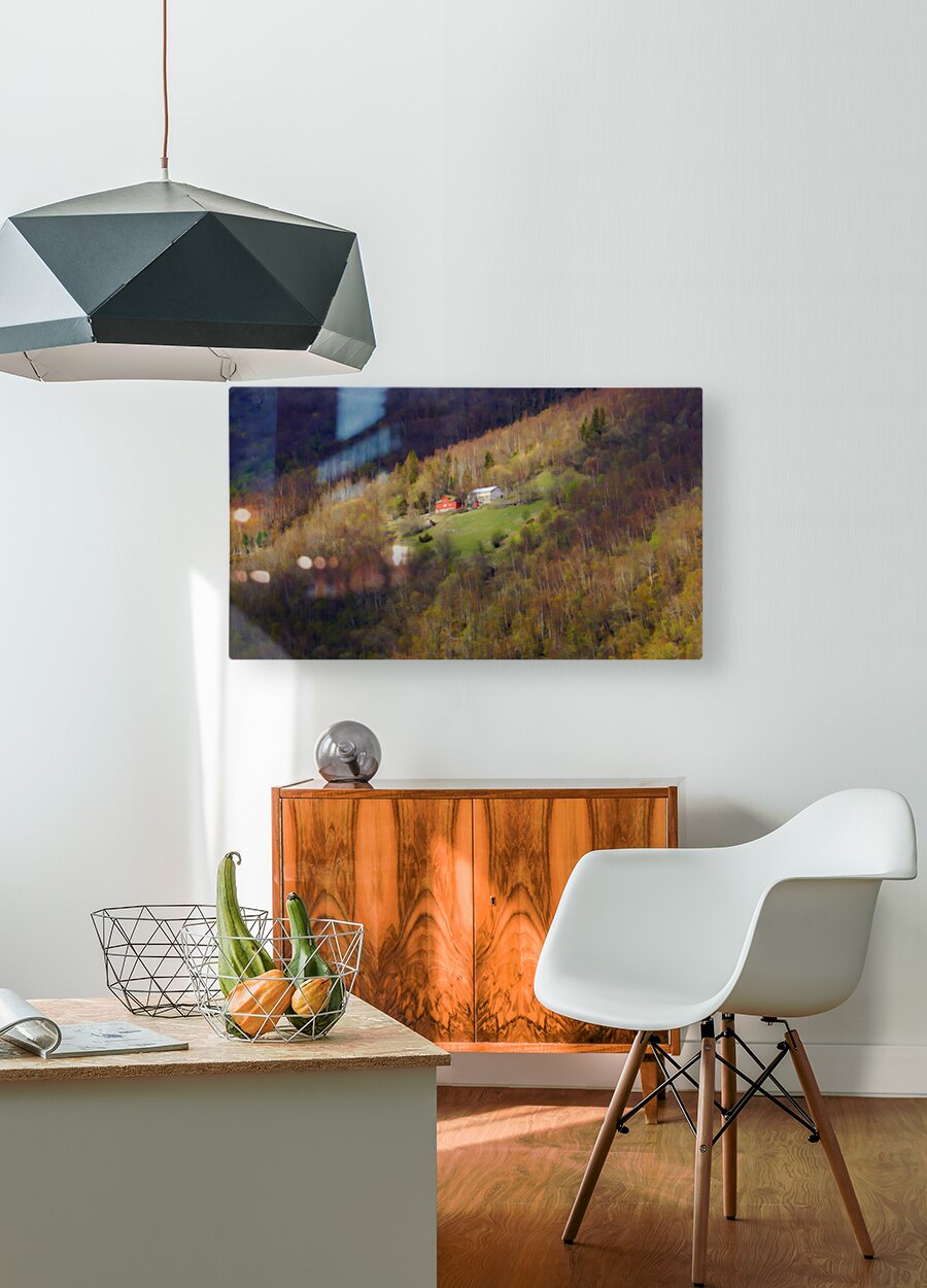 Get this artwork "Farm on fjord Norway" in a framed print.