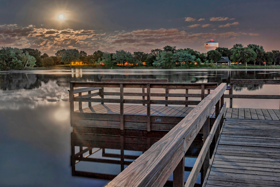 Island lake in Shoreview, Minnesota with rising moon, #1194