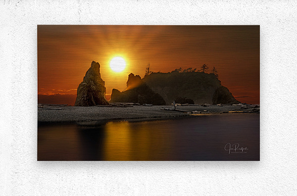 the sun sets on the sea stacks along the coast of Washington, #1881b