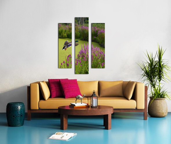 Mallard in flower pond Canvas print