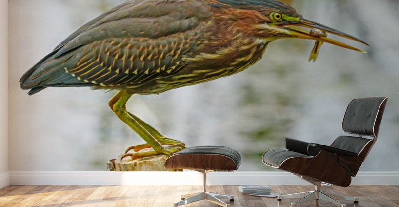 Get this artwork "Green heron feeding" in a framed print.