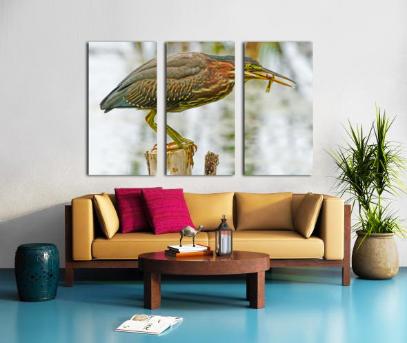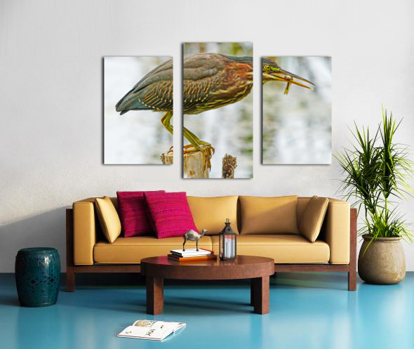 Green heron feeding Canvas print
